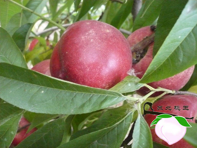大果型油桃,中熟品种,比中油4号晚10天,美国加州红桃系列,单果重0-300克,大果为400克,果面着色,挂树采摘期为25天,果面亮度极好,糖度14.2%(苏北鲁南地区)成熟于6月下旬,果面全红色,果肉为粉红色,硬溶汁,汁液中多,是中熟油桃品种中的品种。